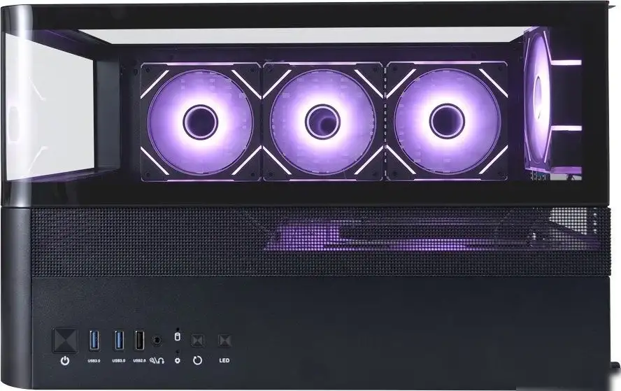Корпус 1stPlayer RT6 ARGB черного цвета отлично подойдет для сборки компактной игровой или офисной системы. Он имеет форм-фактор Mini Tower и поддерживает материнские платы micro-ATX и mini-ITX. В корпусе есть место для видеокарты длиной до 400 мм и процессорного кулера высотой до 157 мм. Он оснащен четырьмя вентиляторами: одним 120 мм сзади и тремя 120 мм внизу, а также поддерживает жидкостное охлаждение радиаторами до 240 мм. Стеклянная передняя панель с забором воздуха и прозрачным окном позволяет любоваться внутренностями системы. В корпусе есть пылевые фильтры, порт USB 3.2 Gen1 и USB 2.0 для подключения гаджетов. Он поддерживает систему хранения с тремя отсеками 2.5 дюймов и двумя внутренними 3.5 дюймовыми отсеками. ПК легко переносить благодаря прочной конструкции, а встроенный контроллер ARGB позволяет управлять подсветкой вентиляторов.
