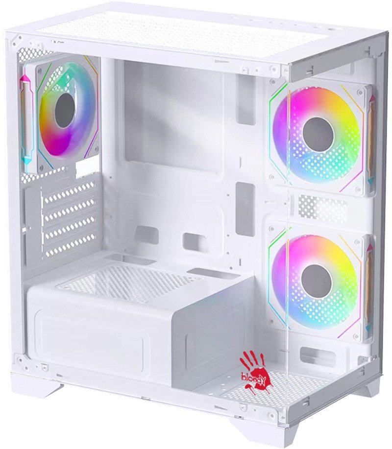 Корпус A4Tech BD-CC103F белого цвета подходит для мини-таймера и совместим с материнскими платами форматов micro-ATX и mini-ITX. Он позволяет устанавливать процессорные кулеры высотой до 165 мм и видеокарты длиной до 330 мм, а также блоки питания длиной до 150 мм. В корпусе есть прозрачное стеклянное окно и аккуратные места для вентиляторов, всего 7, из которых в комплекте идут 3, и управляемые PWM. Он поддерживает жидкостное охлаждение радиусом 120 или 240 мм, что помогает эффективно охлаждать систему. В корпусе предусмотрены два отсека для накопителей 2.5" и один для 3.5" внутри, а также современные порты USB 3.2 и USB-C для удобства использования. Конструкция выполнена из пластика, металла и закаленного стекла, что придает корпусу изящный внешний вид. Размеры позволяют легко переносить его, а небольшая масса — всего 4,2 кг. Этот корпус отлично подойдет для сборки мощной игровой или рабочей системы с хорошей вентиляцией и стильным дизайном.