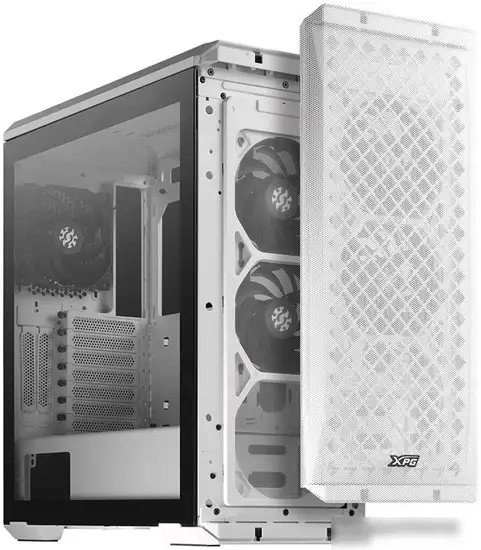 Корпус ADATA XPG Defender белого цвета создан для геймеров и тех, кто собирает мощные игровые ПК. Он выполнен из стали с прозрачным закалённым стеклом, что позволяет показать внутреннюю начинку. В корпусе есть окно и хорошие вентиляционные отверстия, которые помогают обеспечить поток воздуха и снизить температуру компонентов. Поддерживаются материнские платы форматов ATX, micro-ATX, eATX и Mini-ITX, а блок питания размещается снизу. В корпусе установлены три вентилятора XPG VENTO 120 мм, и есть места для дополнительных шести вентиляторов, что обеспечивает хорошую вентиляцию. Есть внутренние отсеки для дисков и возможность установить видеокарту длиной до 400 мм. Также предусмотрены порты USB 3.2 и аудиовыход для подключения гаджетов. Для охлаждения можно использовать жидкостные системы – поддерживаются радиаторы до 360 мм спереди и 280 мм сверху. Корпус обладает простым дизайном без подсветки, но с большим запасом для расширения и охлаждения. Его размеры отлично подходят для установки мощных комплектующих, а вес составляет 7.6 кг.