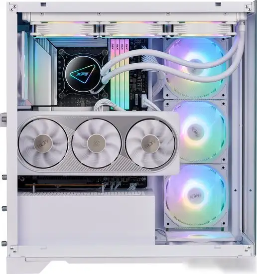 Корпус ADATA XPG Invader X белого цвета подходит для игровых компьютеров и отличается стильным внешним видом с аквариумным дизайном. Он изготовлен из стальной панели с прозрачным закалённым стеклом, что позволяет красиво показать внутренности системы. В корпусе размещается материнская плата форматов ATX, micro-ATX и mini-ITX, а блок питания устанавливается снизу, что обеспечивает хорошую циркуляцию воздуха. Он поддерживает жидкостное охлаждение и подходит для систем с радиаторами до 360 мм, а также позволяет установить до 10 вентиляторов благодаря наличию 4 встроенных. В комплекте есть вентиляторы с RGB-подсветкой, которые помогают создать яркую игровую атмосферу. Корпус обеспечивает максимум 400 мм длины видеокарты и 175 мм высоты процессорного кулера, а также принимает блоки питания длиной до 240 мм. Для удобства пользователя есть разнообразные интерфейсы, такие как USB 3.2 Gen1 и Gen2 Type-C и Type-A, а также аудиовыход. Благодаря пылевым фильтрам и просторному внутреннему пространству, он обеспечивает комфортную сборку и долговечность системы.