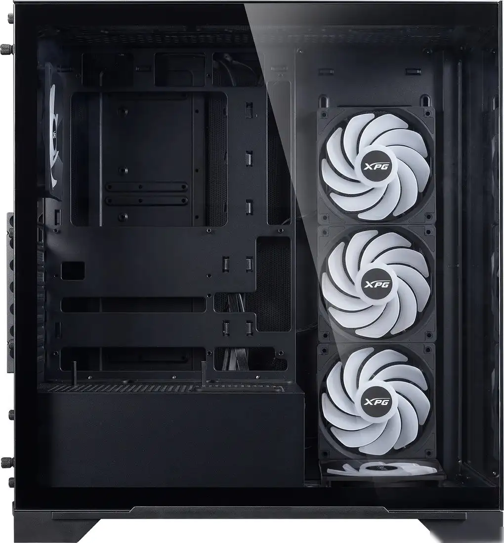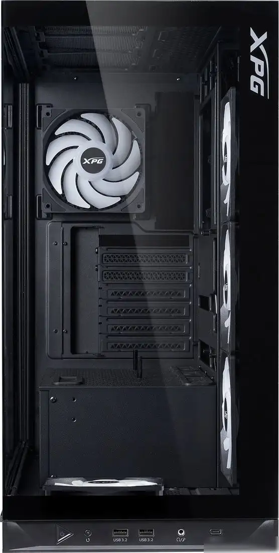 Корпус ADATA XPG Invader X BTF черного цвета сочетает стильный дизайн с хорошей функциональностью. Он выполнен из прочной стали и оснащен прозрачным закаленным стеклом, что позволяет красиво демонстрировать внутренности ПК. В корпусе есть окно, которое помогает видеть компоненты и следить за их состоянием. Поддерживаются платы форматов ATX, micro-ATX и mini-ITX, а также можно установить видеокарту длиной до 400 мм. Корпус располагает сразу тремя слотами для вентиляторов сверху и спереди, а также одним на задней стенке, что помогает эффективно охлаждать устройство. Он поддерживает жидкостное охлаждение радиаторами до 360 мм сверху и спереди. В корпусе есть три внутренних отсека для SSD и HDD, а также отсек для 2.5/3.5 дюймов. В комплекте отсутствует подсветка и контроллеры, но есть пылевые фильтры для защиты от пыли. В верхней панели расположены порты USB 3.2 и аудиовыход, что удобно для подключения устройств. Максимальная длина видеокарты — 400 мм, а высота кулера — 175 мм, что позволяет установить мощные компоненты.