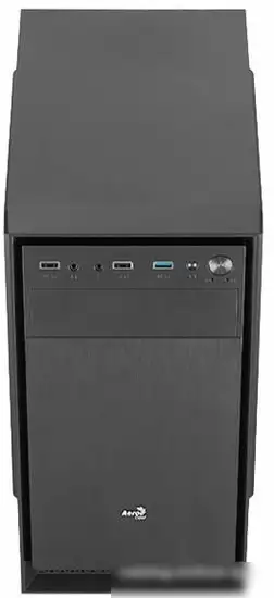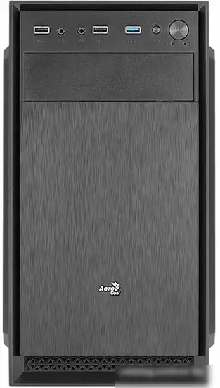 Корпус AeroCool CS-104-S-BK-v1 выполнен в черном цвете из стальной панели, что обеспечивает надежность и прочность. Он предназначен для микро-ATX и mini-ITX материнских плат, помогая сэкономить место на рабочем столе. В передней панели установлен забор воздуха, который способствует хорошей вентиляции внутренних компонентов. В корпусе есть отсек для 5.25 дюймовых устройств и по внутренней стороне — места для одного 3.5-дюймового и двух 2.5-дюймовых жестких дисков, что удобно для хранения и быстрого доступа к накопителям. Он поддерживает установку до четырех вентиляторов, что улучшает охлаждение системы и снижает шум. Максимальная длина видеокарты составляет 286 мм, а высота процессорного кулера — 167 мм, позволяя устанавливать мощные компоненты. На передней панели расположены два порта USB 2.0 и один USB 3.2 Gen1 Type-A, что обеспечивает быстрый обмен данными и удобство подключения периферии. Корпус не имеет встроенной подсветки, пылевых фильтров и вентилятора в комплекте, а также не оснащен дверцами или замками.