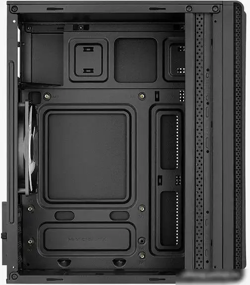 Mini Tower, БП отсутствует, для плат micro-ATX/mini-ITX, в комплекте 1 вентилятор, окно: закаленное стекло, видеокарта до 260 мм, охлаждение ЦП до 156 мм, 2xUSB 2.0, 1xUSB-A 3.2 5Гбит/с, цвет черный