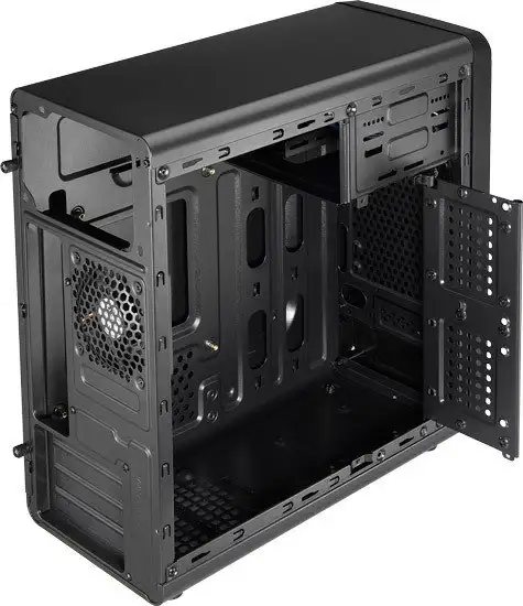 без блока питания, бюджетный, Tower, для плат micro-ATX/mini-ITX, блок питания сверху, 1 вентилятор, 2xUSB 2.0, 1xUSB 3.0, цвет черный