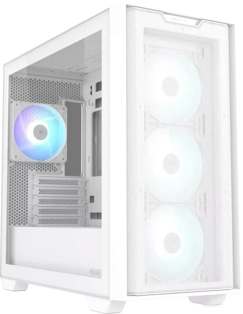 Корпус ASUS A21 Plus — это стильная мини-тонкая башня, выполненная из стали в белом цвете с прозрачным закалённым стеклом. Он подходит для игроков благодаря поддержке компактных материнских плат micro-ATX и mini-ITX, а также возможностям установки мощных видеокарт до 380 мм и высоких кулеров до 165 мм. В корпусе есть предварительно установленные четыре вентилятора с RGB-подсветкой, которые обеспечивают хорошую циркуляцию воздуха и теплоотвод для компонентов. Благодаря поддержке жидкостного охлаждения радиаторами до 360 мм (спереди и сверху) устройство легко адаптируется под мощные системы охлаждения. Верхний и передний воздуховоды с возможностью установки дополнительных вентиляторов позволяют повысить охлаждение, а встроенные USB-A и аудиоразъемы обеспечивают удобное подключение устройств. Корпус отлично подходит для сборки с несколькими накопителями, так как имеет комбинированные боксы для 2.5 и 3.5-дюймовых дисков. Обладает простым и современным дизайном без лишних деталей, что делает его идеальным для геймеров и энтузиастов.