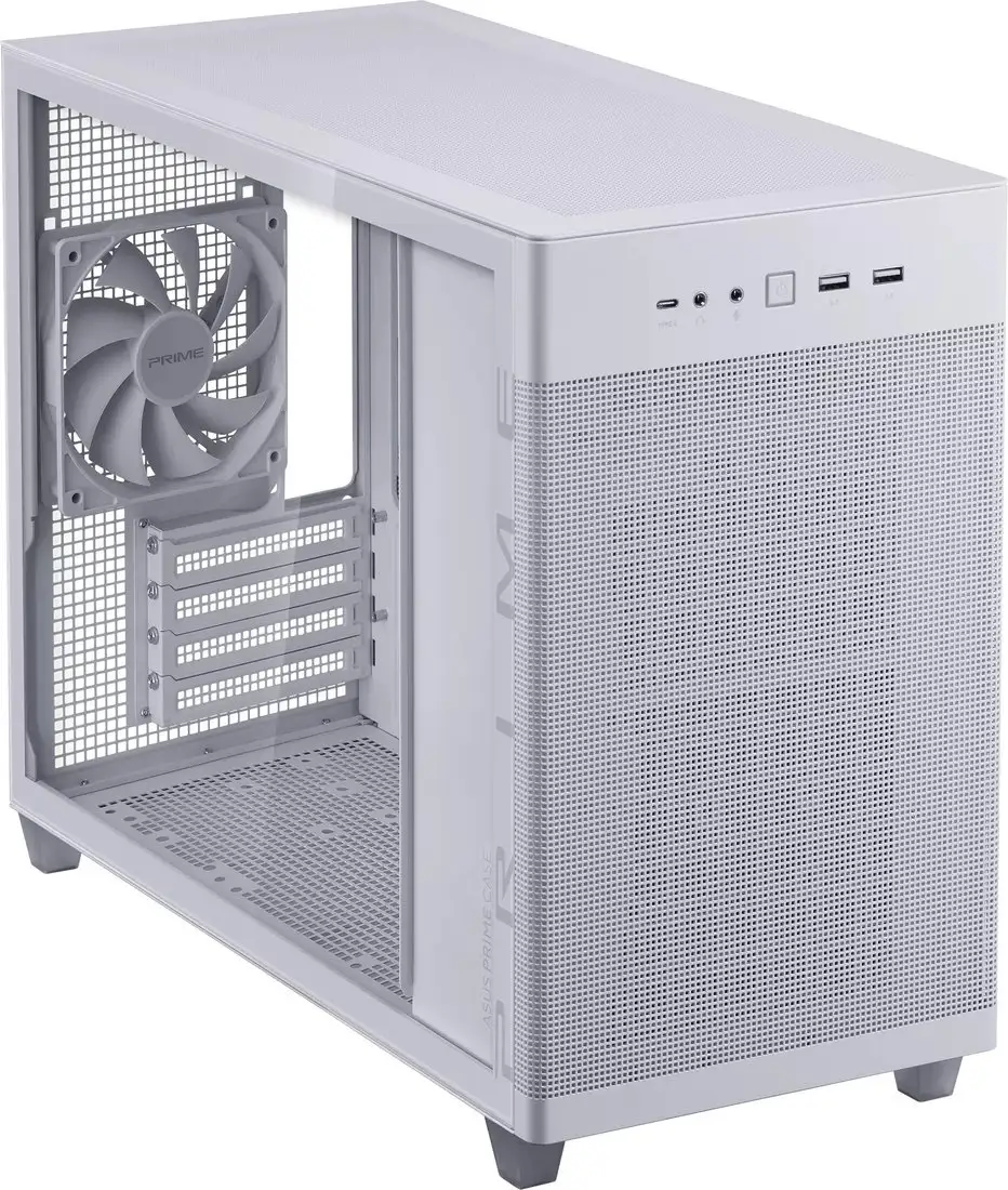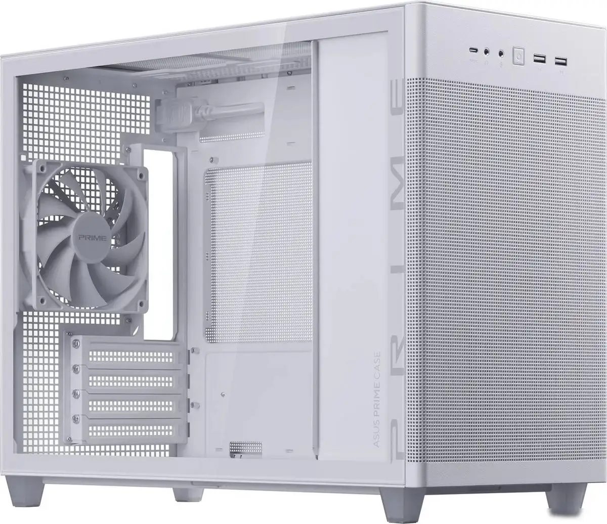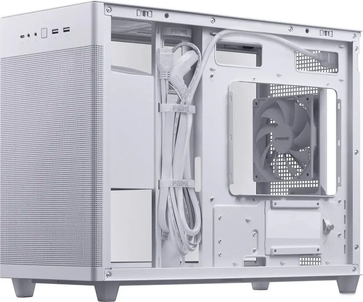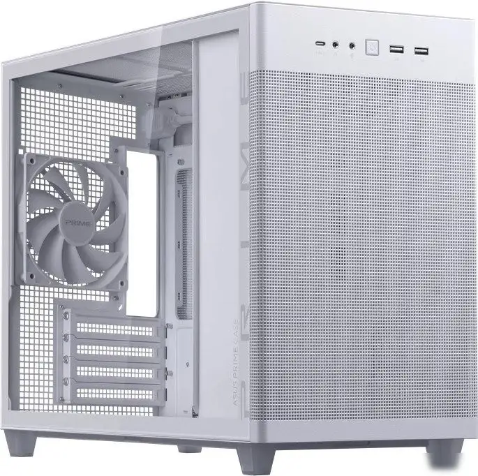 Корпус ASUS Prime AP201 TG (белый) — стильный и прочный мини Tower, выпущенный в 2022 году. Он подходит для игр и отлично подходит для установки материнских плат форматов micro-ATX и mini-ITX. В корпусе есть прозрачное окно из закаленного стекла, чтобы можно было любоваться внутренней начинкой. Он рассчитан на установку системы жидкостного охлаждения и имеет поддержку радиаторов разных размеров. В корпусе есть места для нескольких вентиляторов, уже установлен один, а также есть фильтры для защиты от пыли. Удобство создают встроенные порты USB 3.2, а также аудиоразъемы. Корпус обладает хорошей вместимостью для видеокарт длиной до 338 мм и кулеров высотой до 170 мм.