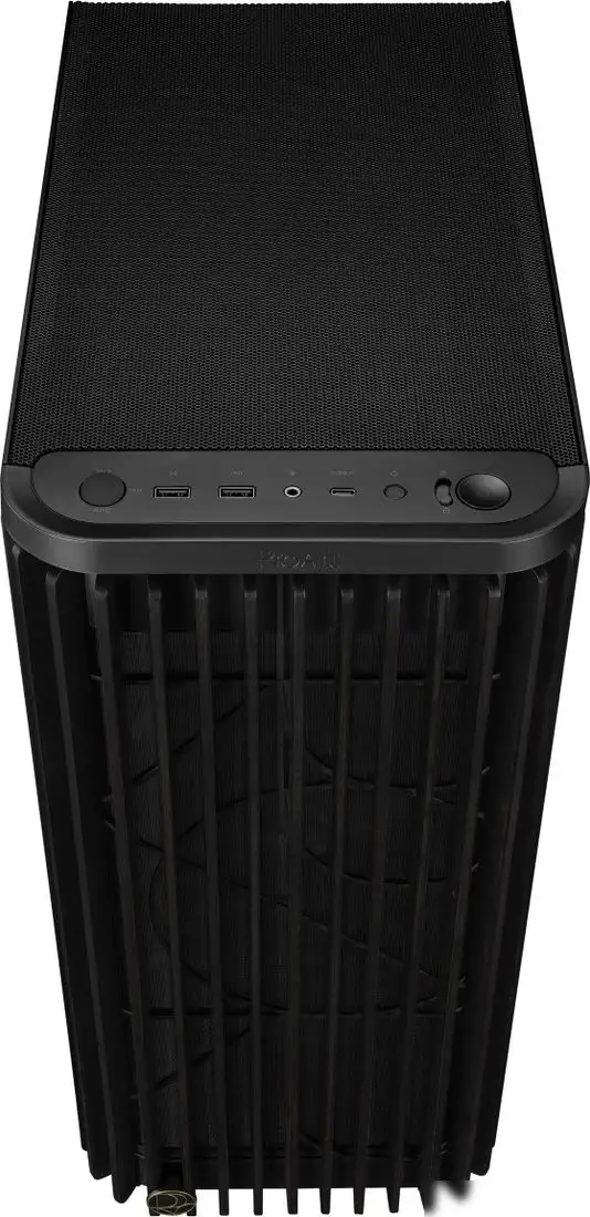 Корпус ASUS ProArt PA401 Wood Edition – это полноценный Mid Tower, который поддерживает материнские платы типа ATX и оснащён тёмным деревянным оформлением и металлом. Он имеет место для установки видеокарт длиной до 315 мм и процессорных кулеров высотой до 160 мм, что позволяет выбрать мощное охлаждение. В корпусе предусмотрены три установленных вентилятора: два спереди и один сзади, а также возможность установки дополнительных вентиляторов и жидкостных систем охлаждения до 240 мм. Пылевые фильтры расположены спереди и снизу, что помогает сохранять внутренности чистыми. На передней панели есть порты USB 3.2 Gen1, USB 3.2 Gen2 Type-C и USB4, а также комбинированный аудиоразъем, что удобно для подключения устройств. Корпус снабжён двумя отсеками для 2.5-дюймовых накопителей и поддерживает контроллер PWM для регулировки скорости вентиляторов. Он легко перемещается благодаря ручке для переноски и весит около 8,6 кг. В корпусе не предусмотрена подсветка или окно, что делает его простым и функциональным. Надёжно защищает компоненты и позволяет организовать хорошую вентиляцию для высокопроизводительных систем.
