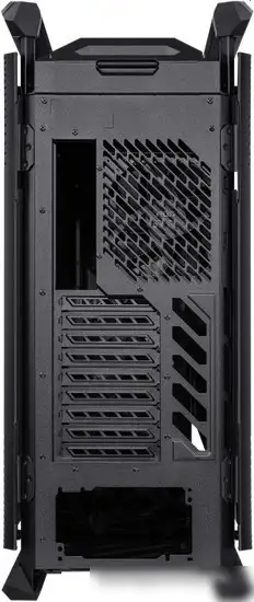 Корпус ASUS ROG Hyperion GR701 — это мощное устройство для геймеров и энтузиастов. Он выполнен из прочной стали и имеет черный цвет, что придает ему современный вид. На передней панели расположена сетка для хорошей вентиляции, а тоже есть прозрачное окно из закаленного стекла, позволяющее показать внутри расположенные компоненты. В корпусе предусмотрено место для материнских плат форматов ATX, micro-ATX, eATX и mini-ITX, а блок питания устанавливается снизу для лучшей вентиляции. Он поддерживает жидкостное охлаждение и радиаторы до 420 мм, что помогает эффективно охлаждать мощные компоненты. В корпусе есть 7 мест для вентиляторов, из которых уже установлены 4, а также есть пылевые фильтры на всех важных элементах для защиты от пыли. Обеспечены внутренние отсеки для накопителей 2,5 и 3,5 дюймов, а также есть возможность установить видеокарту длиной до 460 мм и кулер высотой до 190 мм. На передней и верхней панелях расположены USB-слоты USB 3.2 и Type-C для быстрого подключения устройств. Корпус оборудован контроллерами подсветки и вращения вентиляторов, что дает возможность настроить систему под свои нужды. В целом, этот корпус отлично подходит для сборки мощной игровой системы или мощного рабочего ПК.
