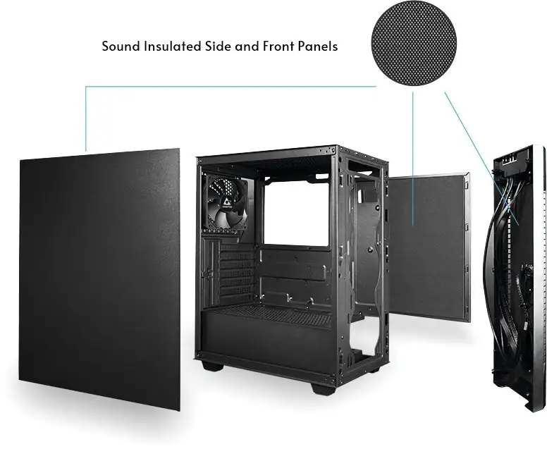 | Расположение вентиляторов | Сзади: 1x 120мм PWM ентилятора вентилятор предустановлен Спереди: 3x 120мм или 2x 140мм ентилятора или вплоть до 280мм радиатор Сзади: 1x 120мм ентилятора Верхняя панель: 2x 120мм ли 2x 140мм ентилятора |