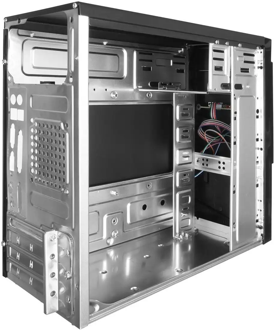 Mini Tower, БП отсутствует, для плат micro-ATX, в комплекте 0 вентиляторов, видеокарта до 200 мм, охлаждение ЦП до 130 мм, 2xUSB 2.0, цвет черный