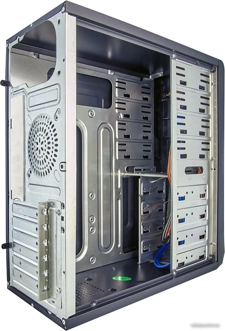 Корпус ExeGate CP-603 — это классическая модель форм-фактора Mid Tower, подходящая для материнских плат ATX и micro-ATX. Он поддерживает процессорные кулеры высотой до 145 мм и видеокарты длиной до 210 мм, что позволяет установить современные компоненты без проблем. В корпусе есть 4 места для вентиляторов, но вентиляторы в комплекте не идут. Корпус оснащён тремя внешними отсеками для 3.5-дюймовых дисков и четырьмя внутренними для хранения данных, а также двумя отсеками для 5.25-дюймовых устройств. Фронтальная панель содержит два USB 2.0, два USB 3.2 Gen1 и аудиоразъемы для удобного подключения периферии. Конструкция выполнена из пластика и металла, имеет классический черный цвет и не оборудована подсветкой или шумоподавлением. Высота корпуса 409 мм, ширина — 184 мм, а глубина — 398 мм. Этот корпус отлично подходит для тех, кто хочет собрать компьютер с современными возможностями и хорошей вентиляцией.