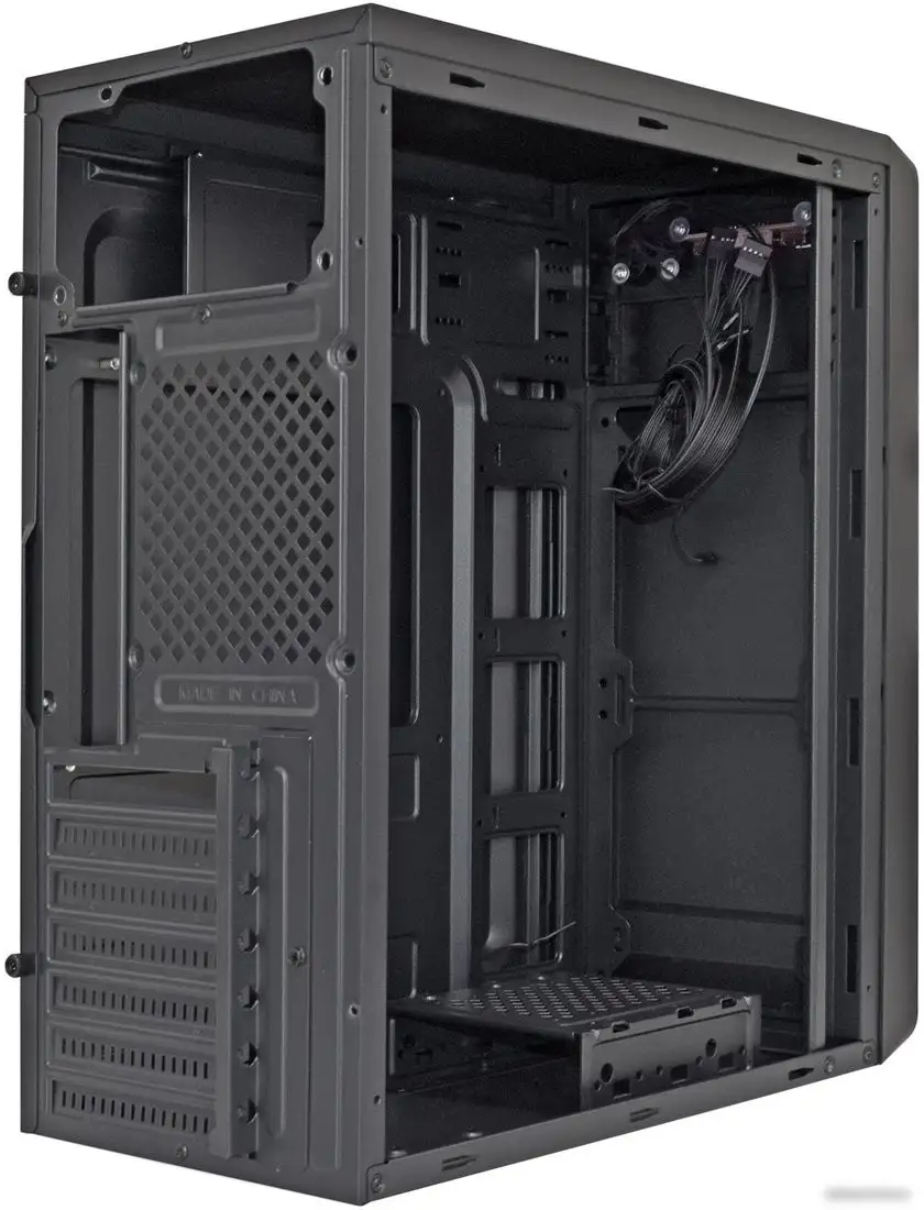 Mid Tower, БП отсутствует, для плат ATX/micro-ATX, в комплекте 0 вентиляторов, видеокарта до 320 мм, охлаждение ЦП до 155 мм, 2xUSB 2.0, цвет черный