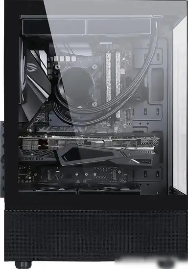 - Прозрачное стекло — позволяет видеть внутренности компьютера.