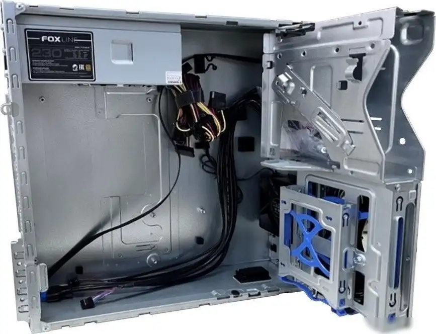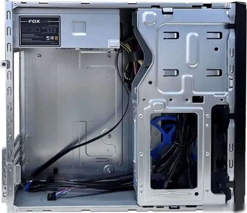 Корпус Foxline FL-207-TFX230B-85-INF выполнен в стиле Mini Tower и окрашен в классический черный цвет. Он изготовлен из прочной стали и отлично подходит для сборки на материнскую плату форм-фактора micro-ATX. В корпусе есть место для одного вентилятора диаметром 80 мм, который обеспечивает достаточный поток воздуха в системе. Передняя панель сделана из пластика и обеспечивает забор воздуха для охлаждения компонентов. Внутри корпуса размещаются диски 2,5 и 3,5 дюймов, причем крепление дисков безвинтовое, что облегчает установку. В корпусе есть один внешний отсек 5,25 дюймов и четыре горизонтальных слота расширения. На передней панели расположены два порта USB 3.2 Gen1, два USB 3.2 Gen2 и один аудиовыход, что удобно для подключения периферии. Этот корпус хорошо подходит для тех, кто ценит компактность, простоту установки и хорошую вентиляцию. Он позволяет легко добавить компоненты и обеспечить правильное охлаждение системы.