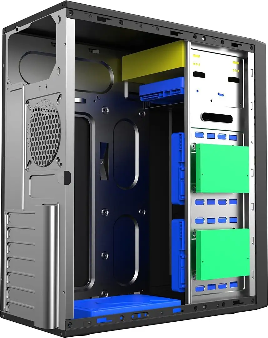 Mid Tower, БП 450 Вт, для плат ATX, видеокарта до 240 мм, охлаждение ЦП до 150 мм, 4xUSB 2.0, цвет черный
