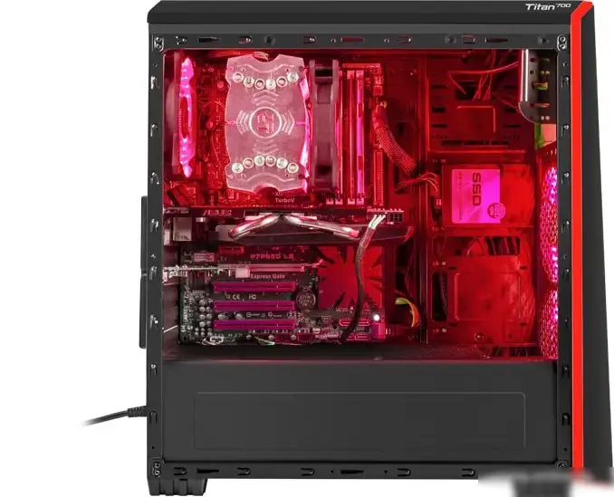 Корпус Genesis Titan 700 — это геймерский корпус, выполненный из стальной панели в черном и красном цветах. Он поддерживает материнские платы форматов ATX, micro-ATX и mini-ITX и располагается в вертикальном Tower-формате. Блок питания устанавливается снизу, обеспечивая стабильную работу системы. Корпус оснащен воздушным охлаждением и имеет 5 мест для вентиляторов, установлены 3 кулера красного цвета для эффективного охлаждения компонентов. Внутри помещаются видеокарты длиной до 385 мм и кулеры высотой до 155 мм, что позволяет собирать мощные игровые ПК. Есть 2 внутренних отсека под 3.5" и 2 под 2.5" жесткие диски, а также 7 слотов расширения. Разработан с вентиляционными отверстиями и пылевыми фильтрами для защиты системы. Внешне корпус украшен прозрачным окном и оснащен быстрым доступом к USB 3.0, USB 2.0 и аудиовыходам для удобства пользователя.