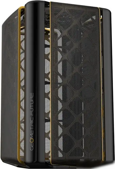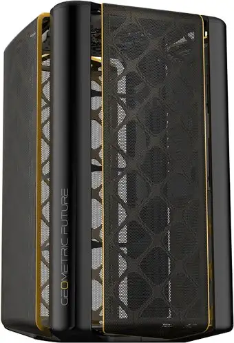 Корпус Geometric Future Model 2 The Ark черного цвета подходит для мини-таймбаров формата micro-ATX и mini-ITX. Он обеспечивает достаточно места для процессорных кулеров высотой до 172 мм и видеокарт длиной до 350 мм. В корпус можно установить блок питания до 180 мм длины, он располагается внизу для лучшей вентиляции. Имеется 7 слотов для вентиляторов, что позволяет выбрать оптимальную систему охлаждения. Он поддерживает жидкостное охлаждение радиусом до 360 мм спереди и сбоку, что помогает держать систему в прохладе. Для хранения есть один отсек 2.5 дюйма, закрепляемый безвинтовым креплением, что облегчает сборку. На передней панелите есть три порта USB 3.2 Gen1 Type-C и один 3.5 мм разъем для наушников или микрофона. Корпус выполнен из пластика и металла, он не имеет подсветки или прозрачного окна. Его размеры — 440 мм в высоту, 280 мм в ширину и 330 мм в глубину, что удобно для размещения на столе или в шкафу.
