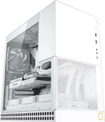 Корпус Geometric Future Model 4 King Arthur — это белый mid tower, подходящий для материнских плат форматов ATX, micro-ATX, eATX и mini-ITX. Он способен вместить процессорный кулер высотой до 164 мм и видеокарту длиной до 310 мм. Конструкция сочетает пластик и металл, а на передней панели есть сетка для хорошего воздухообмена и прозрачное закалённое стекло для видимости внутренних компонентов. В корпусе предусмотрено место для установки до шести вентиляторов, а также поддержка жидкостного охлаждения с радиаторами до 240 мм сверху и 360 мм снизу. Передняя панель оснащена двумя портами USB 3.2 Gen1 и одним USB 3.2 Gen2 Type-C, а также двумя аудиоразъемами. Отсеки позволяют установить два накопителя 2.5" или 3.5" внутри, а также гибко настраиваются под нужные компоненты. Размеры корпуса делают его удобным для домашнего и геймерского использования. Этот корпус помогает обеспечить хорошую вентиляцию и защиту всех компонентов.