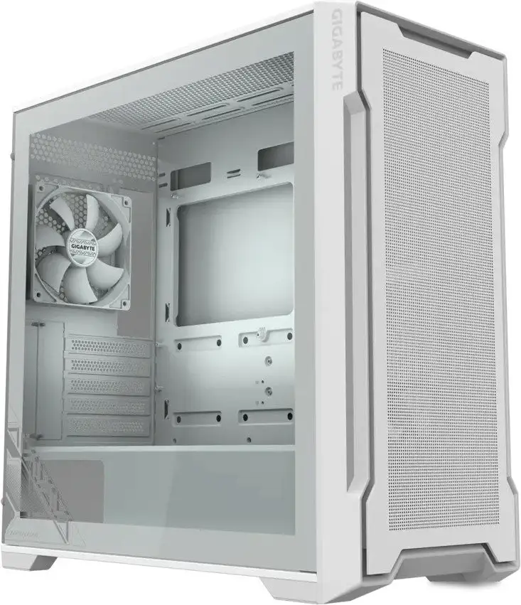 Корпус Gigabyte C102 Glass Ice — это мини-башня в белом цвете, сделана из пластика и металла с прозрачным закалённым стеклом. Он подходит для материнских плат micro-ATX и mini-ITX, а его высота не превышает 165 мм, что позволяет установить мощный процессорный кулер. В корпусе есть место для видеокарт длиной до 410 мм и блока питания до 200 мм, что дает больше свободы при выборе комплектующих. Он оснащён двумя вентиляторами по 120 мм, расположенными спереди и сзади, и поддерживает установку дополнительных вентиляторов для улучшенного охлаждения. Большое пространство для радиаторов жидкостного охлаждения позволяет установить СЖО до 360 мм спереди и сверху, а также 240 мм сбоку. Передняя панель оборудована двумя портами USB 3.2 Gen1 и одним аудиоразъемом для удобства использования. Внутри корпуса есть отсек для двух SSD и один для HDD, а также фильтры для защиты от пыли сверху, снизу и сбоку. Размеры корпуса составляют 450x210x450 мм, а вес — около 5,8 кг, что делает его лёгким и удобным для сборки.