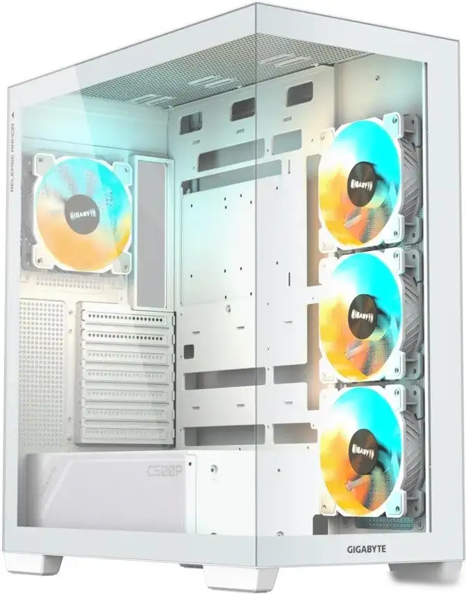 Корпус Gigabyte C500 Panoramic Stealth Ice в белом цвете сочетает стильный дизайн с прочными материалами — сталь, пластик и стекло. Он поддерживает материнские платы форматов ATX, micro-ATX и mini-ITX и оснащён большим прозрачным окном из закалённого стекла, чтобы показать внутренности системы. Внутри есть место для видеокарт длиной до 410 мм и кулеров высотой до 176 мм, а блок питания можно установить снизу длиной до 200 мм. Корпус предназначен как для игр, так и для использования в общем порядке. Он имеет 7 слотов расширения и внутренние отсеке для 2.5-дюймовых накопителей. В корпусе установлено 4 вентилятора с эффектной ARGB-подсветкой, обеспечивающей яркую картинку. Он поддерживает до 10 вентиляторов, а также оборудован пылевыми фильтрами на верхней, нижней и боковой стенках. Для удобства есть разнообразные порты — USB Type-A и Type-C на передней панели, а также аудиовыход. Внешние размеры — около 50 на 23,5 и 43 см, а вес корпуса составляет около 8 кг.