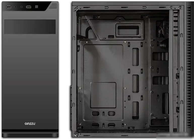 Корпус Ginzzu A190 — это компактное решение для сборки ПК с форм-фактором Mid Tower. Он поддерживает материнские платы ATX и micro-ATX, а также позволяет устанавливать видеокарты длиной до 325 мм и процессорные кулеры высотой до 155 мм. Корпус выполнен из металла и пластика и имеет 7 горизонтальных слотов расширения для установки дополнительных карт и устройств. Внутри есть два отсека по 2,5 дюймов и один отсек по 3,5 дюйма для хранения данных. На передней панели расположены два USB 2.0 и один USB 3.2 Gen1 для быстрого подключения устройств. Внутри есть три места для вентиляторов, но вентиляторы же в комплекте не идут. Также корпус размещается сверху блока питания и имеет грузоподъемность в 2.5 кг. Он не оснащен подсветкой, пылевыми фильтрами или системой охлаждения. Это устройство подходит для тех, кто ищет надежную и простую в использовании основу для своего ПК.