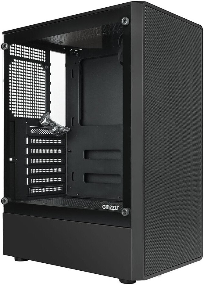 Корпус Ginzzu CL121 выполнен в стиле Mid Tower и подходит для материнских плат форматов ATX, micro-ATX и mini-ITX. Он изготовлен из металла со стеклянной передней панелью и закалённым стеклом, что позволяет любоваться внутренностями системы. В корпусе есть пылевые фильтры сверху, которые помогают держать внутренние компоненты чистыми. Он поддерживает установку до 7 вентиляторов и имеет место для фронтальных, верхних и тыловых вентиляторов по 12 см, что улучшает охлаждение. Есть возможность разместить видеокарту длиной до 295 мм и процессорный кулер высотой до 158 мм для хорошей настройки системы охлаждения. В корпусе есть 2 отсека под накопители 2,5" и 2 под 3,5" устройства, а также съёмная корзина для удобства установки. Передняя панель оборудована портами USB 3.2 Gen1 (тип-А и тип-C) и USB 2.0, а также аудиоразъёмами для наушников и микрофона. Этот корпус легкий и компактный с весом всего 3,13 кг и легко переносится благодаря удобным габаритам.