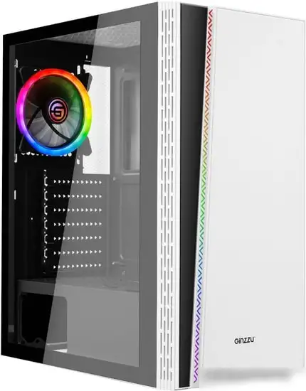 Корпус Ginzzu CL220 — это стильный и прочный Mid Tower для игровых ПК. Он выполнен из стали, имеет белый цвет и прозрачное окно, через которое видно внутренние компоненты. Передняя панель сделана из пластика с забором воздуха, что помогает лучше охлаждать систему. В корпусе есть место для материнских плат форматов ATX и micro-ATX, а также до 7 карт расширения. Он поддерживает установку видеокарт длиной до 330 мм и кулеров высотой до 165 мм. В корпусе есть 8 слотов для вентиляторов и один уже установлен, что обеспечивает хорошее охлаждение. Он оснащён несколькими внутренними отсеками для SSD и HDD и пылевыми фильтрами снизу для защиты от пыли. На передней панели находятся два порта USB 3.2 Gen1, один USB 3.2 Gen2 и аудиоразъёмы. Передний корпус не имеет подсветки или стеклянных окон, что делает его простым в использовании и обслуживании.