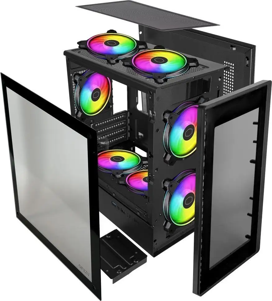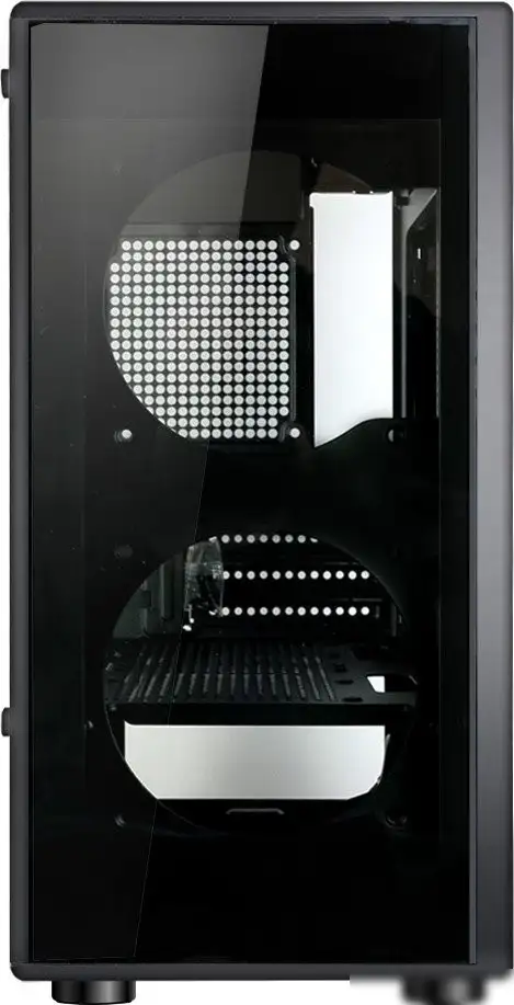 - Прозрачная передняя панель из стекла — показывает внутренние компоненты и делает сборку более эстетичной.