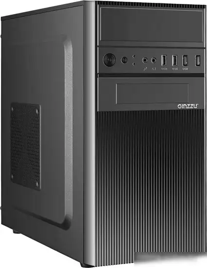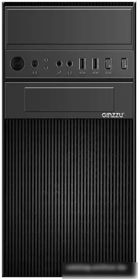 Корпус Ginzzu D190 — компактное решение для сборки вашего ПК в стиле мини-tower. Он выполнен из прочной стали и имеет классический черный цвет. В корпусе есть место для материнских плат форматов micro-ATX и mini-ITX, а также оно рассчитано на видеокарты длиной до 320 мм и кулеры высотой до 148 мм. В передней панели расположены два USB 2.0 и один аудиоразъем для подключения устройств и микрофона. В корпусе есть три вентилятора: спереди, сбоку и сзади, что помогает поддерживать оптимальную температуру внутри. Он содержит один отсек для диска 5.25 дюймов и три для 3.5 и 2.5 дюймов, что позволяет удобно разместить накопители. В корпусе предусмотрено до четырех слотов расширения для установки дополнительных карт. Несмотря на отсутствие подсветки и пылевых фильтров, он подходит для тех, кто ищет лёгкий и практичный корпус с хорошей вентиляцией.