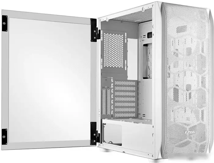 Mid Tower, БП отсутствует, для плат ATX/micro-ATX/eATX/mini-ITX, окно: закаленное стекло, видеокарта до 390 мм, охлаждение ЦП до 168 мм, пылевые фильтры, 2xUSB 2.0, 1xUSB-A 3.2 5Гбит/с, цвет белый