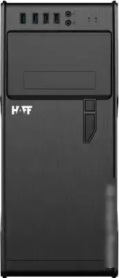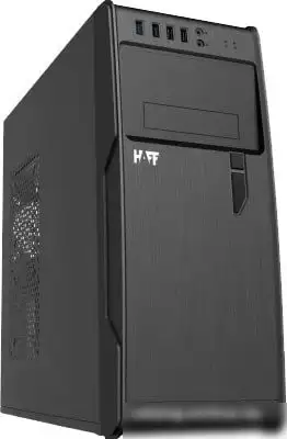 Корпус HAFF 2808-U3 выполнен в форм-факторе Mid Tower и подходит для материнских плат форматов ATX и micro-ATX. Он выполнен из пластика и металла, имеет черный цвет и не оснащён подсветкой или прозрачным окном. В корпусе есть 7 горизонтальных слотов расширения, обеспечивающих возможность установки нескольких карт и устройств. Он поддерживает три вентилятора для эффективного охлаждения, хотя вентиляторы в комплект не входят. Внутри корпуса расположено одну внешнюю 3,5-дюймовую и три внутренних 3,5-дюймовых отсека, а также один отсек 5,25 дюймов для оптических приводов или других устройств. На передней панели есть два USB 2.0 и два USB 3.2 Gen1 порта — удобно подключать разные устройства. Есть два аудиоразъема для микрофона и наушников, а также возможность установить блок питания сверху. Корпус имеет размеры 400x175x405 мм и подходит для тех, кто ищет простое и функциональное решение для сборки ПК.