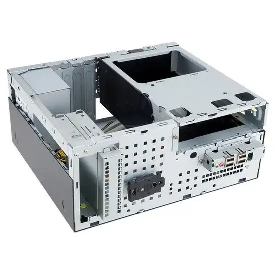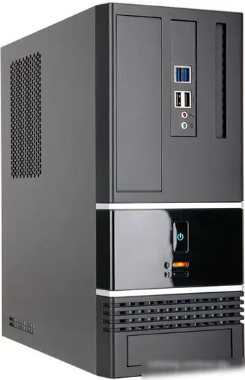 Корпус In Win BK623 U3 черный выполнен из стали с толщиной стенок 0.6 мм, что обеспечивает надежность и долговечность. Он поддерживает материнские платы формата micro-ATX и FlexATX. В корпусе есть место для одного дискового отсека 3.5" и еще одного внутреннего диска 3.5" или 2.5". Для установки вентиляторов не предусмотрены отверстия и места, а охлаждение пассивное, что снижает шум без использования дополнительных кулеров. Внутри корпуса есть один внешний отсек 3.5" и один для картридер, а также 4 слота расширения для карт PCI. В передней панели расположены два USB 3.0 и два USB 2.0, а также аудиоразъёмы для наушников и микрофона. Блок питания мощностью 400 Вт расположен снизу, его кабели не модульные. Корпус оснащен отверстиями для питания материнской платы 20+4 pin, CPU 4 pin и FDD 4 pin. Размеры корпуса — около 323×140×276 мм, а вес — примерно 4.5 кг.