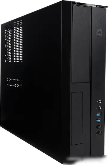Корпус In Win BL067 имеет классический черный цвет и изготовлен из стали, что обеспечивает прочность. Он поддерживает материнские платы форматов micro-ATX и mini-ITX, а также совместим с видеокартами длиной до 195 мм. В корпусе есть места для установки одного вентилятора сверху, который работает тихо и помогает охлаждать компоненты. Передняя панель выполнена из пластика и оснащена несколькими USB-портами: двумя USB 2.0 и двумя USB 3.2 Gen1 Type-A. Корпус оборудован одним отсеком для 5,25-дюймовых устройств и двумя для 3,5-дюймовых, а также отсеком для 2,5-дюймовых дисков, что удобно для расширения. Внутри разместятся компоненты с высотой процессорного кулера до 72 мм. Слоты расширения позволяют установить дополнительные карты, а наличие пылевых фильтров помогает сохранять чистоту внутри. Размеры корпуса — 346×187×411 мм, а вес — около 6 кг, что делает его достаточно компактным и легким в переноске. Этот корпус отлично подходит для сборки надежного и эффективного компьютера.