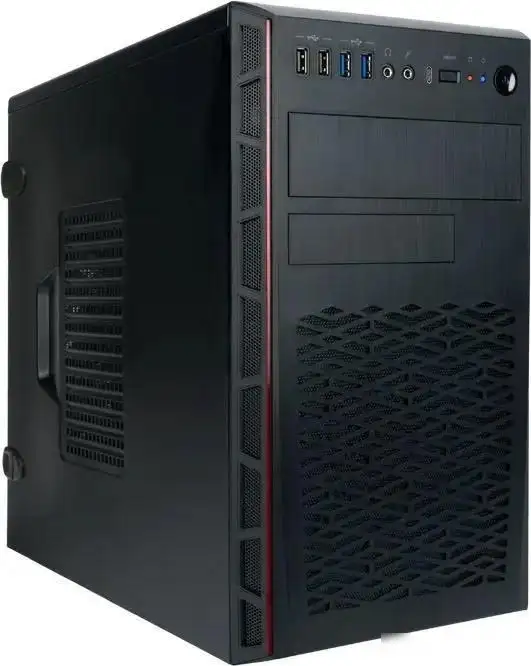 Корпус In Win EMR065BL — это небольшой корпус типа Mini Tower, выполненный из стальной материала и рассчитанный на материнские платы формата micro-ATX. Он оснащен двумя вентиляторами по 90 мм для обеспечения охлаждения, при этом есть возможность установить еще два вентилятора спереди и сзади для улучшения вентиляции. Корпус имеет одно отделение для 5.25-дюймовых устройств, а также несколько отсеков для жестких и твердотельных дисков: одно внешнее и шесть внутренних. На передней панели есть два USB 3.2 Gen1, два USB 2.0 порта и аудиоразъемы для наушников и микрофона. Благодаря своему компактному размеру (высотой 350 мм, шириной 220 мм и глубиной 420 мм), корпус легко разместится на рабочем столе или в небольшом помещении. Он подходит для установки видеокарт длиной до 242 мм и кулеров высотой до 163 мм.
