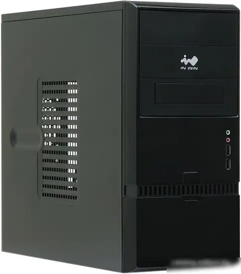 Корпус In Win ENR022 — это прочная и стильная башня, выполненная из стали и пластика в черном цвете. Он подходит для материнских плат форм-фактора micro-ATX и имеет место для двух вентиляторов для вентиляции. Внутри разместятся два 5,25-дюймовых и три 3,5-дюймовых отсека, а также два слота для SSD или HDD 2.5", заменяющих стандартные HDD. Аккуратно уловленные кабели и воздушное охлаждение помогают поддерживать оптимальную температуру внутри. В корпусе есть два порта USB 3.0 и аудиоразъемы для комфортного подключения устройств. Максимальная длина видеокарты — 350 мм, что позволяет установить современные графические карты. Он легко размещается на столе или в шкафу благодаря габаритам и весу в 3.86 кг.