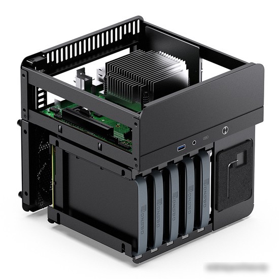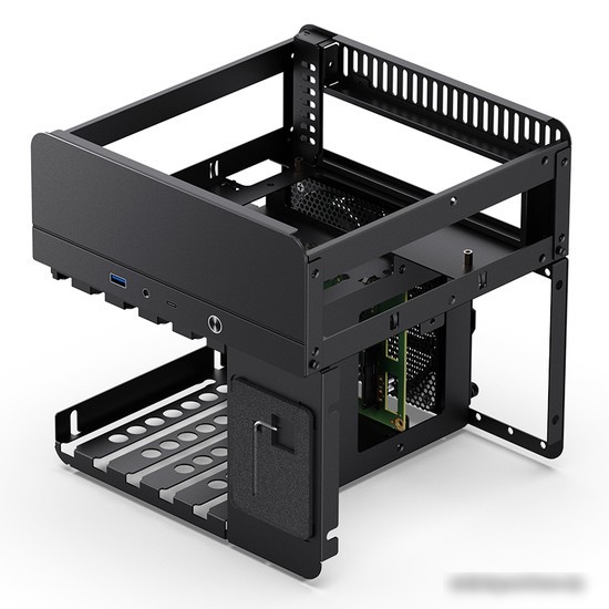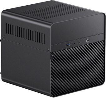 Корпус Jonsbo N2 черного цвета — компактное решение для установки мини-ITX материнских плат. Он выполнен из стали и имеет горизонтальную конфигурацию, удобную для настольного размещения. В корпусе есть одно предустановленное вентиляционное отверстие и место для одного вентилятора спереди, что помогает поддерживать оптимальную температуру внутри. Подходит для видеокарт длиной до 193 мм и кулеров высотой до 65 мм, а блок питания SFX длиной до 150 мм устанавливается снизу. На передней панели расположены USB 3.2 Gen 1 и Gen 2 Type-A и Type-C порты, а также аудиоразъемы. Внутри есть пять отсеков для дисков 2.5/3.5 дюймов, обеспечивая возможность хранения данных. Конструкция не предусматривает шумовую изоляцию и пылевые фильтры, что сокращает обслуживание. Благодаря компактным размерам и легкому весу в 2.9 кг, корпус легко разместить на любой поверхности. Он подходит для тех, кто ищет стильное и удобное решение для мини-ВАЙНА. Для расширения есть один горизонтальный слот расширения.