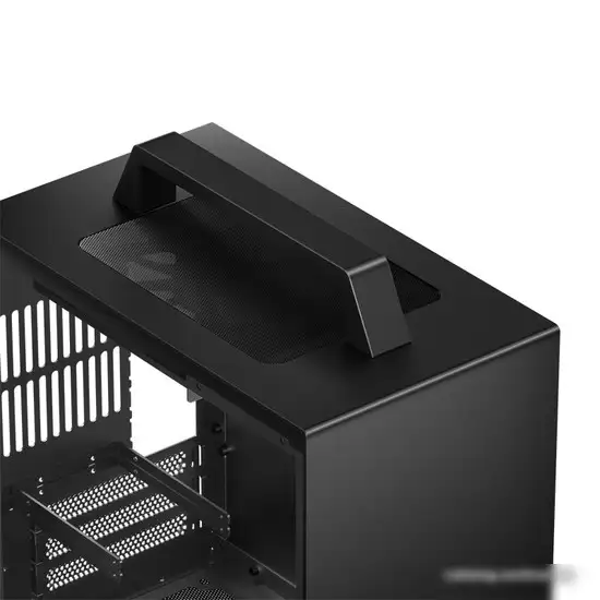 Корпус Jonsbo T8 Plus — компактная мини-башня, выполненная из стали в черном цвете. Он поддерживает материнские платы формата mini-ITX и позволяет установить видеокарту длиной до 270 мм, а кулер — до 135 мм. В корпусе есть прозрачное закаленное стекло на боковой стенке, что красиво показывает внутренности системы. Он оснащен одним вентилятором 140 мм сверху и двумя 120 мм снизу, что помогает удерживать компоненты в прохладе. На передней панели расположены порты USB 3.2 Gen 1 Type-A и Type-C для быстрого подключения устройств. Внутри есть четыре отсека для 2.5-дюймовых накопителей, что удобно для хранения данных. Корпус не имеет подсветки и пылевых фильтров, он легкий — всего 3,2 кг. Размеры позволяют разместить в ограниченном пространстве, а наличие вентилятора обеспечивает хорошую циркуляцию воздуха. Таким образом, этот кейс подойдет для тех, кто ищет стильный и компактный корпус для мини-компьютера.
