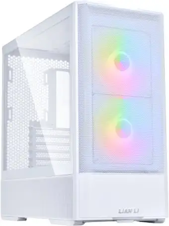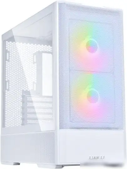 Корпус Lian Li Lancool 207 G99.LAN207RW.10RS — это Mid Tower, выполненный из стали с прозрачным закаленным стеклом, позволяющим увидеть внутренности системы. Он подходит для материнских плат форматов ATX, micro-ATX и mini-ITX и имеет встроенную подсветку ARGB вентиляторов, которая создаёт эффект яркой подсветки. В корпусе установлены четыре вентилятора: два спереди с ARGB подсветкой и скоростью до 1900 RPM, два на кожухе блока питания без подсветки, что обеспечивает хорошую вентиляцию. Он поддерживает жидкостное охлаждение радиаторами до 360 мм сверху и до 240 мм спереди. Корпус оснащён семью слотами расширения и возможностью установки видеокарт длиной до 375 мм, а высота процессорного кулера не превышает 180 мм. Внутри есть место для накопителей в комбинированных отсеках для 2.5 и 3.5 дюймов, а также имеются дополнительные места для вентиляторов. Подключение внешних устройств обеспечивают порты USB 3.2 Gen 1 и Gen 2, а также аудиовыход, что удобно для подключения современной техники. Корпус не имеет подсветки, дисплея или встроенного контроллера, но обладает хорошей вентиляцией и стильным внешним видом.