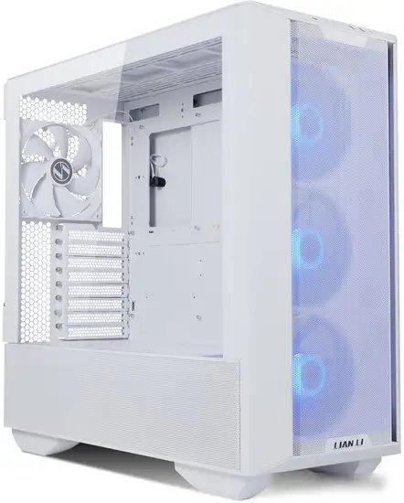 Корпус Lian Li Lancool III RGB G99.LAN3RW.10R — это средняя башня для игровых компьютеров. Он выполнен из стального материала и имеет прозрачное закалённое стекло на боковой панели, что позволяет красиво показать внутренние компоненты. Передняя панель с сеткой обеспечивает хорошую вентиляцию и охлаждение. В корпусе есть место для материнских плат разного размера: ATX, micro-ATX, mini-ITX и eATX, а также до 8 внутренних дисков 2,5 дюйма. Он поддерживает жидкостное охлаждение с радиаторами до 360 или 420 мм, расположенными спереди, сверху и над блоком питания. В комплект входят четыре вентилятора ARGB, которые можно подключить и управлять через встроенный контроллер. В корпусе есть 8 слотов для внутренних расширений и один для вертикальной установки видеокарты длиной до 435 мм. Он не имеет шумаизоляции и подсветки корпуса, но оснащён современной системой подсветки вентиляторов и разъёмами USB 3.2 Gen 1 и Gen 2, а также аудиовыходом для комфортного использования.