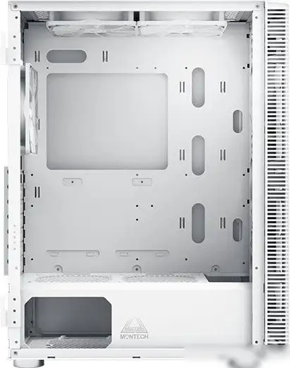 Корпус Montech X3 Glass белого цвета подходит для игровых компьютеров и поддерживает материнские платы форматов ATX, micro-ATX и mini-ITX. Он выполнен из прочной стали и имеет прозрачное закаленное стекло, которое позволяет видеть внутренности системы. Передняя панель украшена стеклом с забором воздуха для хорошей вентиляции. В корпусе установлены шесть вентиляторов и есть место для еще двух, что обеспечит хорошее охлаждение. Он не имеет подсветки, но укомплектован контроллером вентиляторов. Внутри есть два отсека для SSD или HDD и семь расширительных слотов, что удобно для подключения дополнительных устройств. Максимальная длина видеокарты — 305 мм, а высота процессорного кулера — 160 мм, что дает возможность установить мощную компоненту. Блок питания размещен снизу, и имеет длину до 160 мм, что позволяет выбрать подходящий. Корпус оснащен полезными разъемами: двумя USB 2.0, одним USB 3.2 Gen1 Type-A и одним USB 3.2 Gen2 Type-A.