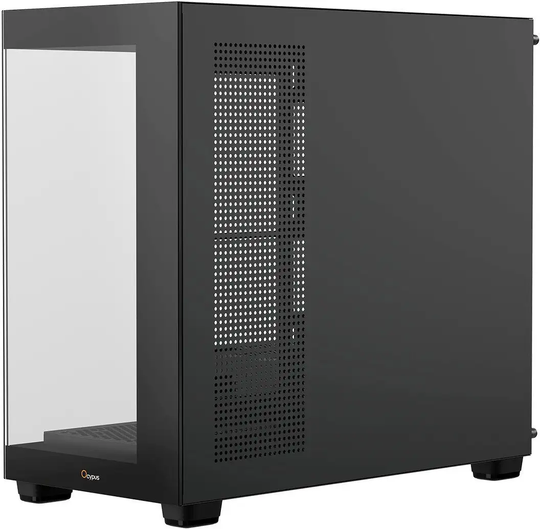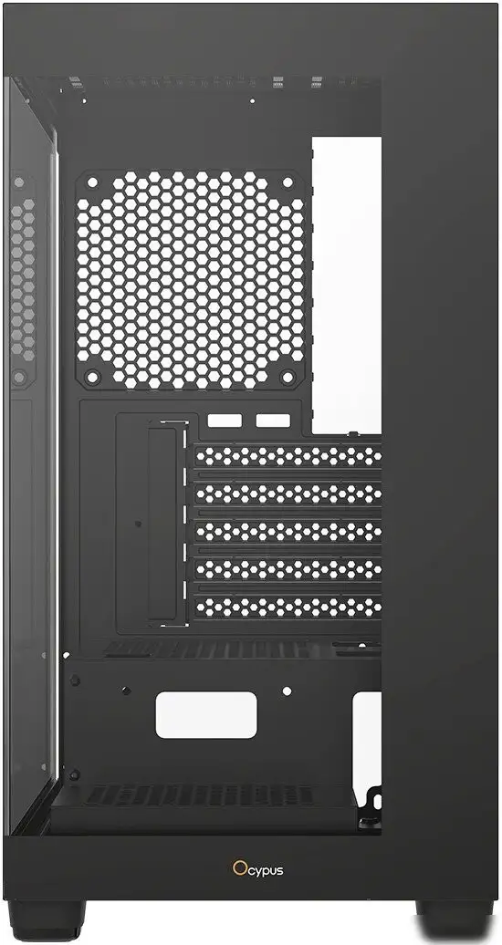 Корпус Ocypus Gamma C52 BK — это мини-башня с черным корпусом из пластика, металла и закаленного стекла. Он подходит для материнских плат форматов micro-ATX и mini-ITX и поддерживает процессорные кулеры высотой до 170 мм. В корпусе есть место для видеокарты длиной до 425 мм и блока питания до 250 мм, который устанавливается снизу. Внутри есть один отсек для внутреннего 3,5-дюймового диска и комбинированный отсек для накопителей 2,5 и 3,5 дюймов. На передней панели расположены два порта USB 3.2 Gen1, один USB 2.0 и аудиоразъемы. В корпусе можно установить до 8 вентиляторов, а также есть поддержка жидкостного охлаждения радиаторами до 360 мм, что помогает эффективно охлаждать систему. Пылевые фильтры защищают от пыли сверху и снизу, а прозрачное закаленное стекло позволяет любоваться внутренностями. Корпус имеет размеры 414 x 218 x 434 мм и хорошо подойдет для сборки производительной системы с хорошим охлаждением.