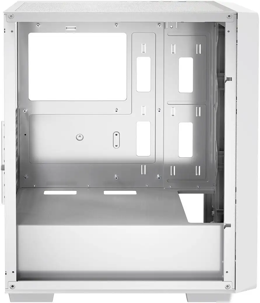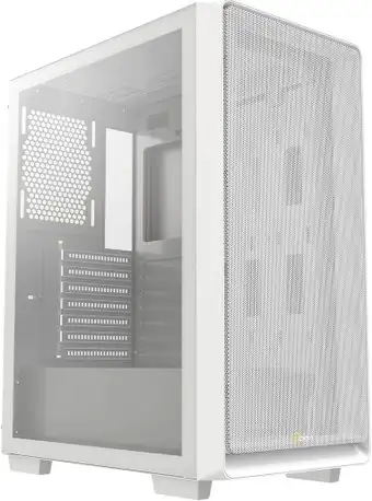 Mid Tower, БП отсутствует, для плат ATX/micro-ATX/mini-ITX, без вентиляторов в комплекте, окно: закаленное стекло, видеокарта до 330 мм, охлаждение ЦП до 175 мм, пылевые фильтры, 2xUSB 2.0, 1xUSB-A 3.2 5Гбит/с, цвет белый