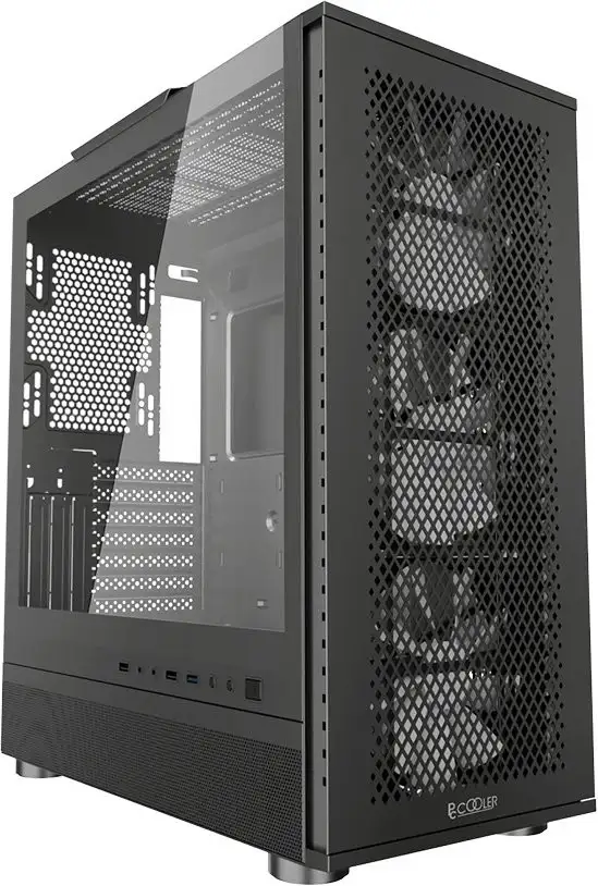 Корпус PCCooler ME200 Mesh черного цвета подойдет для тех, кто ищет просторную и надежную компьютерную систему. Он совместим с материнскими платами форматов ATX, micro-ATX, eATX и mini-ITX, а его размеры позволяют устанавливать видеокарты длиной до 380 мм и процессорные кулеры высотой до 180 мм. В корпусе есть место для до девяти вентиляторов, и он уже укомплектован тремя вентиляторами по 120 мм спереди для хорошей вентиляции. Кроме того, он поддерживает жидкостное охлаждение радиаторами до 360 мм, что обеспечивает стабильную работу системы. Передняя и и боковая панели украшены закаленным стеклом, а также есть пылевые фильтры для защиты внутренних компонентов. Также корпус оснащен современными портами USB 3.2, двумя аудиоразъемами и возможностью размещения накопителей.