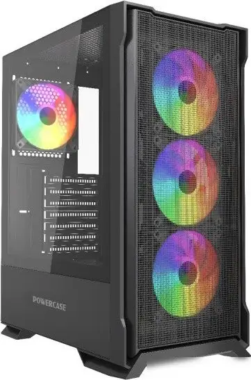 Корпус Powercase Mistral AZ4B ARGB CMAZB-A4 выполнен в мини-торговом формате и подходит для материнских плат micro-ATX и mini-ITX. Он имеет прозрачное стеклянное окно, которое позволяет видеть внутри компоненты, а также оснащен пылевыми фильтрами сверху и снизу для защиты от пыли. В корпусе установлены 4 вентилятора: три спереди и один сзади, все с многоцветной ARGB-подсветкой для яркой подсветки системы. Он поддерживает видеокарты длиной до 305 мм и процессорные кулеры высотой до 175 мм, что дает возможность установить большое охлаждение. Есть два отсека для твердотельных накопителей 2.5", а также внутренние слоты для 3.5" дисков. В корпусе есть порты USB 3.2 и USB 2.0 на фронтальной панели, а также комбинированный аудиоразъем. Его размеры делают его компактным, а вес — около 5 кг, что удобно для перемещения и установки.