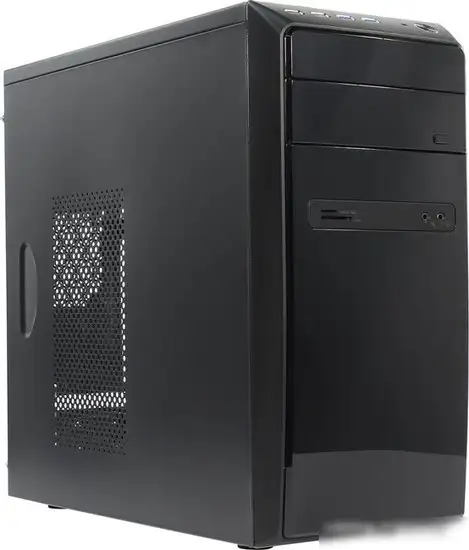 Корпус Powerman ES-726BK 450W — это чёрный tower с прочным стальным корпусом. Он подходит для материнских плат формата micro-ATX и имеет верхнее расположение блока питания мощностью 450 Вт. В корпусе есть два слота для вентиляторов, что помогает поддерживать хорошее охлаждение. Внутри размещается одна 5,25-дюймовая и две 3,5-дюймовые корзины для жестких дисков, а также слоты расширения для карточек. На передней панели есть USB 3.0 и USB 2.0 разъёмы, кардридер и аудио входы для микрофона и наушников. Корпус весит всего 4,15 кг и хорошо подходит для сборки недорогих систем. Он прост в использовании и имеет достаточно места для компонентов, необходимых большинству пользователей.