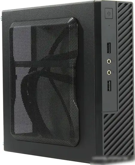 Корпус Powerman ME100S — это компактное и прочное устройство, выполненное из металла черного цвета. Он подходит для установки материнских плат формата mini-ITX и имеет внутреннее отделение для одного SSD-накопителя, что удобно для хранения данных. В корпусе есть один встроенный вентилятор, который помогает охлаждать компоненты, а также есть место под еще один вентилятор для улучшения вентиляции. Передняя панель сделана из пластика с забором воздуха для лучшего охлаждения. Корпус не имеет пылевых фильтров, подсветки и кнопок, но оснащён разъёмами USB 3.2 и аудио выходом. Он лёгкий, всего около 800 граммов, и удобно занимает мало места на столе.
