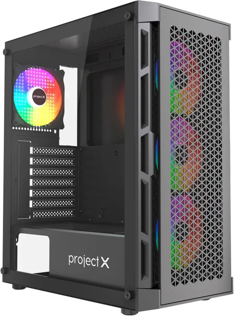 Корпус Project X Viper – это средний корпус с просторной внутренней компоновкой, который подходит для материнских плат форм-фактора ATX, micro-ATX и mini-ITX. Он выполнен из прочных материалов — пластика, металла и закаленного стекла, что придает ему современный и стильный вид. В корпусе есть прозрачное окно из закаленного стекла, которое позволяет любоваться внутренней начинкой ПК. Он оснащен четырьмя вентиляторами: тремя спереди и одним сзади, все с многоцветной адресной подсветкой (ARGB), что помогает эффективно охлаждать компоненты и создает яркую подсветку. Вместительность позволяет установить видеокарту длиной до 330 мм и кулер высотой до 160 мм, что удобно для современных комплектующих. Внутри корпуса расположены два отсека для SSD по 2,5 дюйма и два для HDD по 3,5 дюйма, обеспечивая достаточно места для хранения информации. На передней панели есть два порта USB 2.0, один USB 3.2 Gen1 и один USB Type-C 3.2, что дает быстрый доступ к подключению устройств. Надежная вентиляция достигается наличием пылевых фильтров сверху и снизу корпуса, а встроенные вентиляторы обеспечивают хорошую циркуляцию воздуха. Модель подходит для пользователей, ищущих функциональный корпус с хорошей вентиляцией и стильным дизайном.