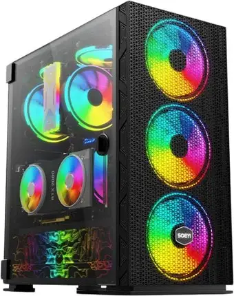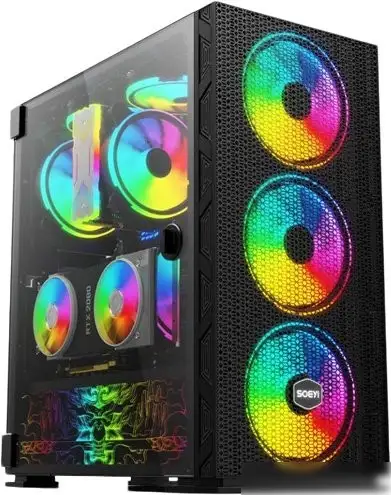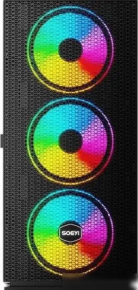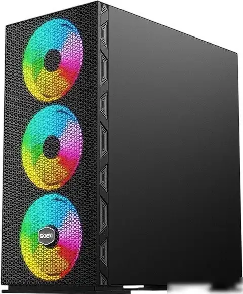 Корпус Soeyi AX8-B20 Tempered Glass — это просторный корпус форм-фактора Mid Tower. Он поддерживает материнские платы типа ATX, micro-ATX, mini-ITX и eATX, что дает много возможностей для сборки. В корпусе есть место для видеокарты до 340 мм и процессорного кулера высотой до 160 мм. Он оснащен 4 предустановленными вентиляторами с поддержкой до 8, что обеспечивает хорошее охлаждение. В корпусе есть место для жидкостных систем охлаждения размером до 360 мм. Благодаря прозрачному закаленному стеклу вы можете наслаждаться видом внутренних компонентов. Корпус оснащен пылевыми фильтрами сверху и снизу, чтобы сохранить чистоту внутри. В передней панели расположены порты USB 3.2 Gen1 Type-A и USB 2.0, а также аудиоразъемы. Краткое описание ключевых функций приведено в списке.