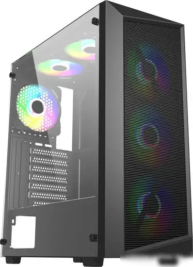 Mid Tower, БП отсутствует, для плат ATX/micro-ATX, окно: закаленное стекло, видеокарта до 340 мм, охлаждение ЦП до 160 мм, пылевые фильтры, 2xUSB 2.0, 1xUSB-A 3.2 5Гбит/с, цвет черный