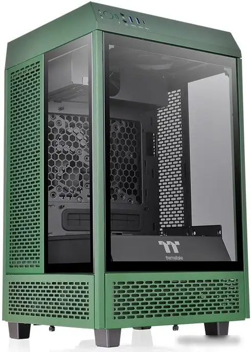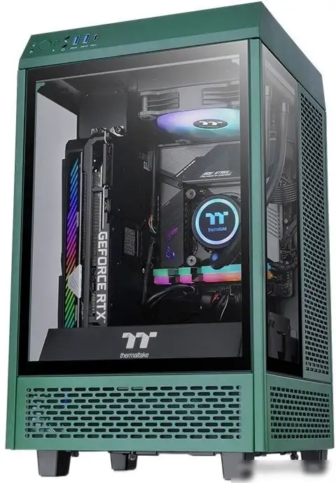 Корпус Thermaltake The Tower 100 Mini Racing Green — это компактный мини-корпус, предназначенный для материнских плат формата mini-ITX. Он позволяет установить видеокарты длиной до 330 мм и процессорные кулеры высотой до 190 мм. В корпусе есть пространство для трех вентиляторов — два вверху и один сзади, что помогает эффективно охлаждать систему. Он поддерживает жидкостное охлаждение и оснащён двумя отсеками для SSD 2.5 дюймов, что удобно для хранения данных. Передняя панель выполнена из стекла с забором воздуха и включает порты USB 3.2 Gen1, USB 3.2 Gen2 Type-C, а также аудиоразъемы. У корпуса есть пылевые фильтры снизу, сзади и сбоку для защиты компонентов от пыли. Он выполнен из металла и пластика, имеет прозрачное окно, а также подходит для сборки мощных систем с хорошей вентиляцией. Вес корпуса составляет около 6.1 кг, а габариты — 462,8 мм в высоту и по 266 мм в ширину и глубину.